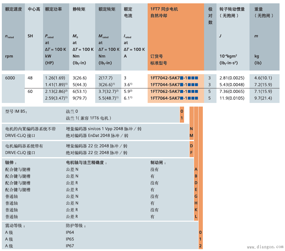 1FT7034-5AK71-1FL11FT7062-5AK71-1FL1紧急求教,请问上面伺服电机各符号的含义