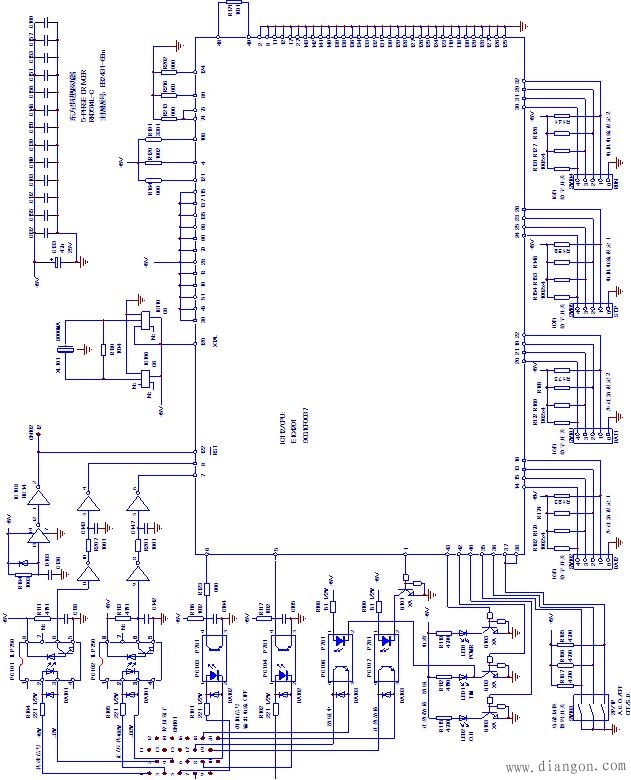如图4所示电路,包含了MCU基本工作电路、控制端子信号输入/输出电路和功能整定电路。