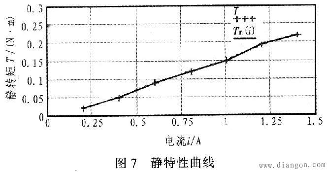 为检验该控制系统的实际工作情况,在给定PMM2101输出工作电流的状态下采用能量转化法测得步进电机输出的最大静转矩。选取输出电流间隔0.2 A,测到步进电机最大静转矩与电流之间关系的静特性曲线,如图7所示,说明该控制系统设计较合理。