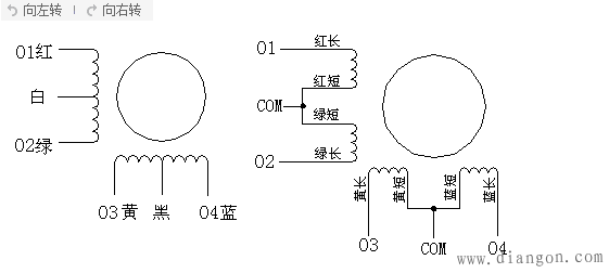 四相八线和两相四线步进电机的区别: 两相步进电机在定子上只有两个绕组,有四根出线,整步为1.8°,半步为0.9°。在驱动器中,只要对两相绕组电流通断和电流方向进行控制就可以了。而四相步进电机在定子上有四个绕组,有八根出线,整步为0.9°,半步为0.45°,不过驱动器中需要对四个绕组进行控制,电路相对复杂了。