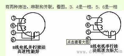 B.由于只接1、6,2、8或1、6,7、4二个线圈电机也能正常转动,所以,在4个线圈中任选2个,接在驱动器上;