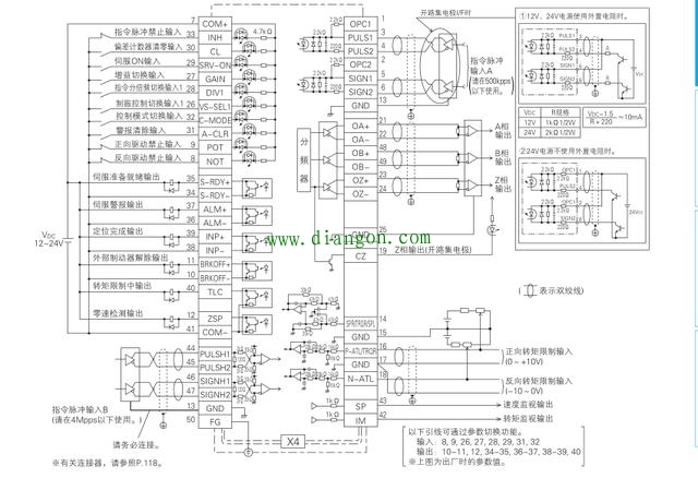 根据接线图我们可以看出,伺服的功能强大,拥有很多引脚,很多功能。但是我们可以根据自己的需求,只接其中的部分引脚即可。(其中7号引脚需接12~24v,41号引脚和29号引脚短接到0v,必须要接的)然后如果我们用plc对伺服进行控制,若是我们接的3,4,5,6号引脚,则我们需要将3号和5号引脚短接到24v,4号和6号引脚串接2KΩ的电阻后分别接到PLC的脉冲输出和方向输出端子上。如果我们用的是1,4,2,6号引脚,则我们不需要串电阻即可。那么接好线后,我们需要更改伺服的哪些参数呢?