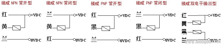 号:通过不同的接线方式可接成五种不同的输出形式(适用于光电开关)