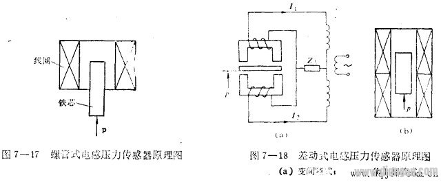 电感式压力传感器也称变磁阻式压力传感器,它是在压力作用下使衔铁他移(见图7―16)使线圈的电感发生变化而工作的.根据其结构形式的不同,可以分为变闭隙式和螺管式两种.