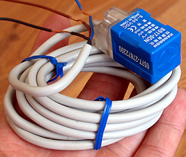 图1所示是一种用途非常广泛的电感式传感器,它能用于检测金属物,特别是对铁金属能很好的检测出来,并且性能稳定可靠,是最常用的检测方法,被广泛应用到限位开关、状态检测等用途。一般电感式传感器背后有工作指示灯,当检测到物体时红色LED点亮,平时处于熄灭状态,非常直观。