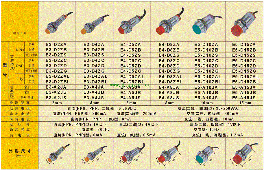交流接近开关优选AC 220V和AC 36V;直流接近开关优选DC 12V和DC 24V。一般情况下,接近开关的电压选择范围很广。如下图所示:
