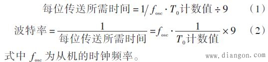 (2)协议约定通信开始时主机发送1 串字符,从机以某固定波特率接收,然后通过软件分析接收到的数据,计算出接收数据与发送数据之间的倍数关系,从而确定正确的波特率。