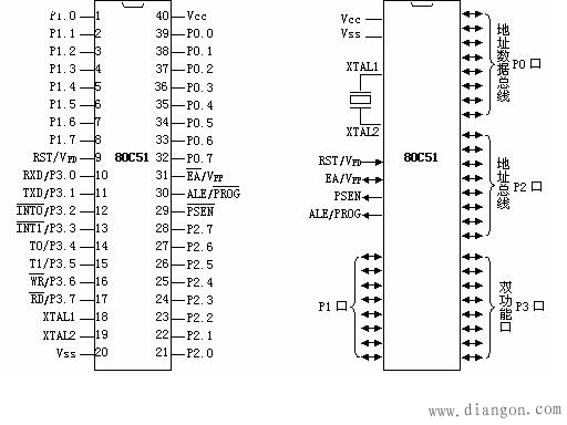② PROG功能:片内有EPROM的芯片,在EPROM编程期间,此引脚输入编程脉冲。