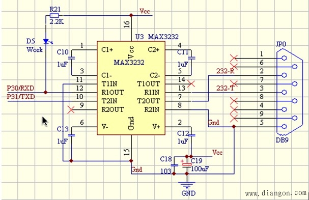 图7 单片机串口通讯电路