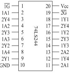 单片机总线端口的驱动能力是有限的,一般只能驱动几个LSTTL负载或十几个MOS电路负载,若需要挂接多个负载,因此常常需要进行总线驱动。单向驱动器74LS244是一种常用的总线驱动器。其外形如图7,引脚如图8所示。