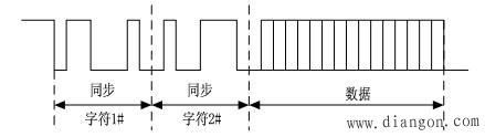 用同步通讯方式传输数据块时,将需要传送的字符顺序连接起来组成一个数据块,在数据块前面加上特殊的同步字符作为数据块的起始符号,接收端接收到同步字符后,开始接收数据块,使收/发双方同步。其数据格式如图4。