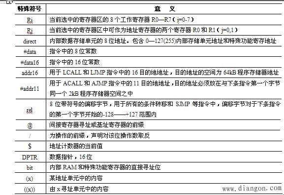 二、单片机指令格式本章后面章节部分用到了一些一些特殊符号,它们的意义如表1所示。