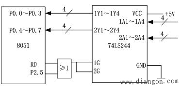 图1是利用74LS244进行简单输入接口扩展的连接图。