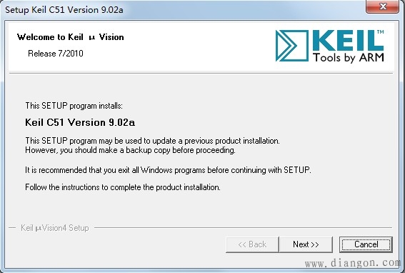 1、首先准备KEIL uVision4安装源文件,双击安装文件,弹出安装的欢迎界面,如图1-1所示。