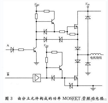 为了抑制功率管内的快恢复,二极管出现反向恢复效应,在电路中接入4只快恢复二极管。其中,反并联快恢复二极管的作用是为电机相绕组提供续流通路,其余2 只是为了使功率MOSFET管内部的快恢复二极管不流过反向电流,以保证功率MOSFET管在动态工作时能起到正常的开关的作用。