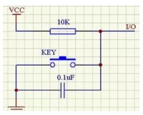 消除方法有两种:软件除抖和硬件除抖,其中硬件除抖是应用了电容对高频信号短路的原理。