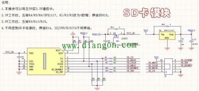 6.SD卡模块电路(带锁):本电路与SD卡的封装有关,注意与封装对应。此电路可以通过端口控制SD卡的电源,比较完善,可以用于5V和3.3V。但是要注意,有些器件的使用,5V和3.3是不一样的。