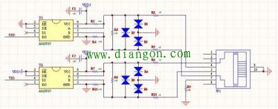 9.全双工RS485电路(带保护功能):带有保护功能,全双工4线通信模式,适合远距离通信用。