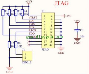 11. ARM JTAG仿真接口电路:比较完善,可以应用在常规的ARM芯片下,具有有自动下载功能,可以用JLINK或ULINK.