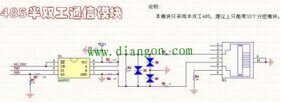 10.RS485半双工通信模块:可以通过选择端口选择数据的传输方向,带保护功率。此模块只能工作在5V.