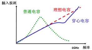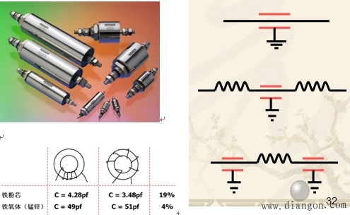 穿心电容:穿心电容实质上是一种三端电容,一个电极与芯线相联,另一个电极与外壳相联。使用时,一个电极通过焊接或螺装的方式直接安装在金属面板上,需要滤波的信号线连接在芯线的两端。穿心电容的滤波范围可以达到数GHz以上。