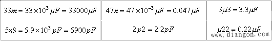电容器容量的数码表示法