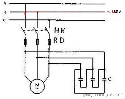电力电容器用于提高电网的功率因数,是利用电容电抗来减少线路中的由于电感电抗的存在所造成的电压损失,起到减少线路消耗、增加线路输送容量作用。 图1为高压电网上集中装在10KV母线侧电容器组的接线线路。它的优点是维护方便,能减少主变压器及输电线路的超负荷运转负荷。 图2为装在低压配电线路上的分组补偿电容器线路。其特点是能补偿配电网及配电变压器的无功损失,降低线损。但是安装较分散,轻负荷运行时电压过高不能及时退出电容器运行,对用电设备和电容器不利。 图3为装在电动机旁的分别补偿线路其特点是可装减少低压配电线路的导线截面积和配电变压器的容量,对于较大容量的电动机更为有利。 做无功功率补偿的电力电容器容量要根据用电负荷计算。用电力电容器补偿无功功率太多,会造成电容在电网上的补偿电压过高,造成用电设备烧坏;而补偿容量过小,又起不到很好的无功功率补偿作用。 图1