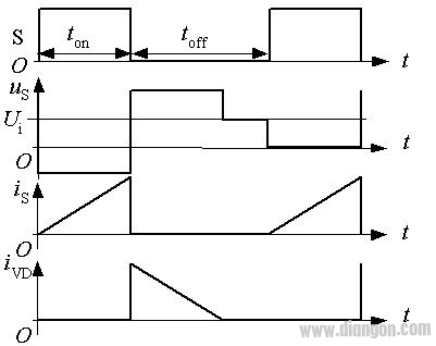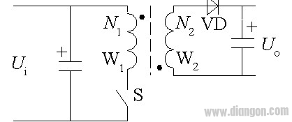 S关断后,N1绕组的电流被切断,变压器中的磁场能量通过N2绕组和VD向输出端释放.S关断后的电压为:us=Ui+N1*Uo/N2