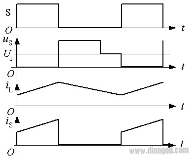 a> 开关S开通后,变压器绕组N1两端的电压为上正下负,与其耦合的N2绕组两端的电压也是上正下负.因此VD1处于通态,VD2为断态,电感L的电流逐渐增长;