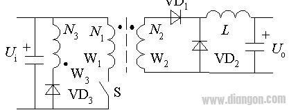 b> S关断后,电感L通过VD2续流,VD1关断.S关断后变压器的激磁电流经N3绕组和VD3流回电源,所以S关断后承受的电压为 .