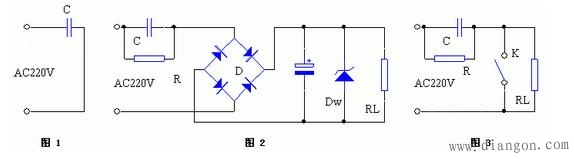 (1)经电容器降压后,必须如图2所示经整流、滤波及稳压二极管稳压后,才能获得电压稳定的电源(注:整流电路也可用半波整流)。