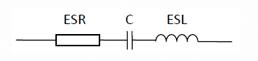 ESL:电容等效串联电感。电容的管脚是存在电感的。在低频应用时感抗较小,所以可以不考虑。当频率较高时,就要考虑这个电感了。举个例子,一个0805封装的0.1uF贴片电容,每管脚电感1.2nH,那么ESL是2.4nH,可以算一下C和ESL的谐振频率为10MHz左右,当频率高于10MHz,则电容体现为电感特性。