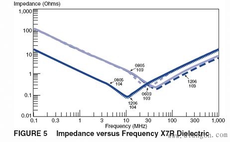 下面我们看一些X7R材质瓷片电容的频率特性: