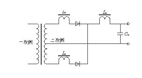 输出整流二极管的反向恢复问题可以通过在输出整流管上串联一个饱和电感来抑制,如图1所示,饱和电感Ls与二极管串联工作。饱和电感的磁芯是用具有矩形 BH曲线的磁性材料制成的。同磁放大器使用的材料一样,这种磁芯做的电感有很高的磁导率,该种磁芯在BH曲线上拥有一段接近垂直的线性区并很容易进入饱和。实际使用中,在输出整流二极管导通时,使饱和电感工作在饱和状态下,相当于一段导线;当二极管关断反向恢复时,使饱和电感工作在电感特性状态下,阻碍了反向恢复电流的大幅度变化,从而抑制了它对外部的干扰。