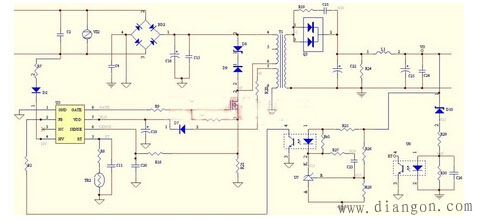接下来电工学习网小编会以单端反激式开关电源为例介绍其原理。单端反激开关电源采用的是稳定性很好的双环路反馈的控制系统,所以它可以通过开关电源的PWM迅速调整脉冲占空比,从而在每一个周期内对前一个周期的输出电压和低级线圈充磁峰值电流进行有效调节,达到稳定输出电压的目的。这种反馈控制电路的最大特点是:在输进电压和负载电流变化较大时,具有更快的动态响应速度,自动限制负载电流,补偿电路简单。