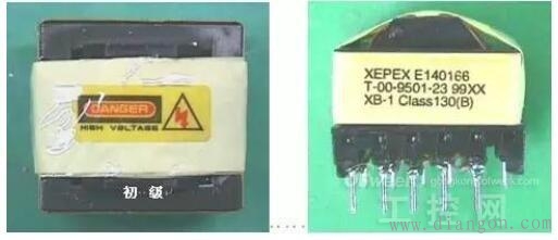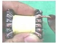 注意:铁心胶布起绕处与结束处;立式起绕于引脚端中央,结束于中央;卧式起绕于引脚1,结束于引脚1。有的铜箔则起绕于焊接点,结束于焊接点。