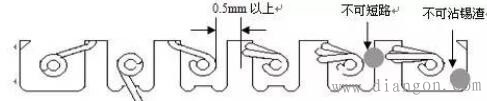 1)引脚为垂直引脚时,可留锡尖,但锡尖长不超过1.5mm。