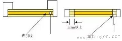 2)点锡适量,焊点须光滑,不可带刺,点锡时间不可太长,以免烧坏胶带;