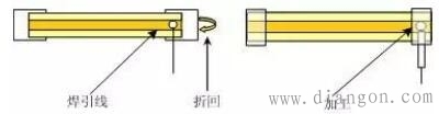 注意:铜线须紧贴脚根,预计焊锡后高度不会超过墩点;不可留线头,不可压伤脚,不可压断铜线,不能损坏模型。