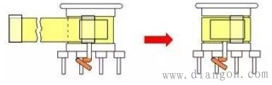 2)不用的引脚剪去时,应在未绕线前先剪掉,以防绕完线后再剪除时会刮伤线或剪错脚,而且可以避免绕线时缠错脚位。