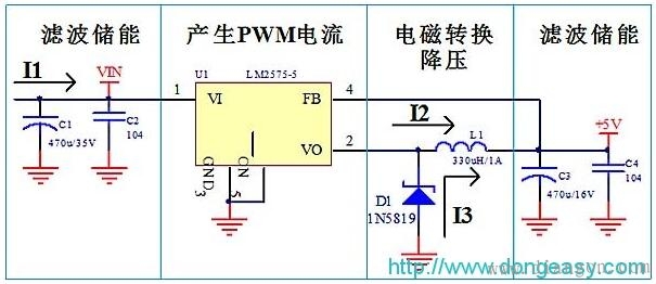 开关电源就是用通过电路控制开关管进行高速的导通与截止,产生PWM波形,经过电感和续流二极管,利用电磁电转换的方式调压。开关电源功率大、效率高、发热小,我们一般用的电路有:LM2575、MC34063、SP6659等。开关电源理论上是电路两端功率相等,电压成反比,电流成反比。