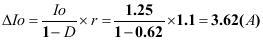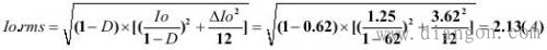 假设已知连续工作模式的反激变换器,其输出电流Io为1.25A,纹波率r为1.1,占空比D为0.62,开关频率为60kHz,由此可以计算次级纹波电流ΔIo和有效值电流Io.rms。