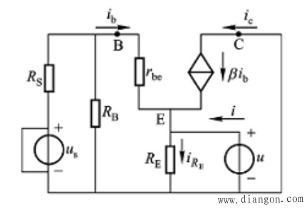 射极输出器中的电阻Rg,还具有稳定静态工作点的作用。例如,当温度升高时,由于ICQ增大,IEQ增大使Rg上的压降上升,导致 VBEQ下降,从而牵制了ICQ的进一步上升,最终稳定了静态工作点。