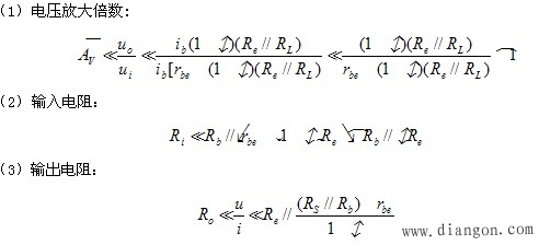 由以上分析可见,共集电极电路的主要特点是:电压增益接近于1;故称电压跟随器;输入电阻大,对电压信号源衰减小;输出电阻小,带负载能力强。
