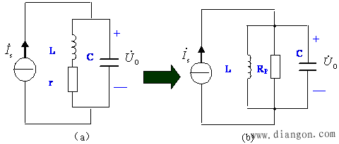 并联谐振回路如图1(a)所示,注意图中r代表电感L的损耗电阻,通常r很小, ;电容器的损耗很小,一般略去其损耗电阻。为了计算方便,电感的损耗电阻也可用并联于L上的电阻 表示,如图1(b)所示。 1、并联谐振回路的基本参数: 并联谐振频率 品质因数定义: 空载(即没有带负载,没有接信号源)品质因数 2、并联谐振回路的阻抗特性