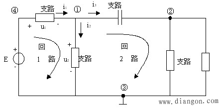 基本的电路元件可以分成两类:无源元件和有源元件。 理想的无源元件  图1 无源元件  图2a 电阻 图2b 电容  图2c 电感 独立电源分为:电压源:理想的电压源称为恒压源,即电动势源;电流源:理想的电流源称为恒流源。 非独立电源是一种等效电源,也有电压源和电流源之分。非独立电源的电压或电流,不是独立的由电源内部因素决定的,它受电路中某一电压或电流的控制,因此也称它为受控电源。  图6 非独立电源 图7 非独立电源示例 线性电路的特征:参数值恒定的元件就是线性元件,由线性元件组成的电路,就是线性电路。  图8 线性电路输入输出示意图 电路图――电路的联接图,它表示电路元件的连接顺序,图9就是一例。节点――两个以上元件的连接点。如图9中的①、②、③都是节点,而④不算节点。支路――联接两个相邻节点的一个或几个元件的串联组合。在这些串联元件中流有相同的电流。如图9的节点①、②之间只有一条支路;节点①、③之间有两条支路;节点②、③之间有两条支路。回路――若干支路所串成的闭合路径。如图9所示的电路就有六个回路。  图9 电路图 基尔霍夫第一定律说:节点电流的代数和等于0。 Σi =0 基尔霍夫第二定律说:闭合回路上所有各支路电压的代数和等于0。 Σu=0 由于基尔霍夫第一、第二定律是建立在电荷守恒和能量守恒这两个基本物理定律的基础上的,因此它们是支配电路中电压和电流的基本定律。 |