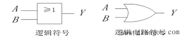 所有输入信号中,只要有一个为高电平输出就是高电平,这样的数字逻辑电路叫做或门电路。或门电路的逻辑表达式为Y=A+B。图2是二输入或门电路的逻辑符号和逻辑电路符号.