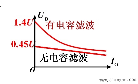 整流滤波电路中,输出直流电压VO随负载电流IO的变化关系曲线如图3。