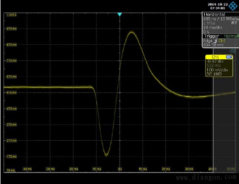 由于输入的三角波为已知信号,因此我们主要观察放大器的输出信号。测试环境中存在环境噪声、工频干扰以及电路固有噪声的影响,本应该平滑的输出波形上有明显的毛刺(如图1所示),毛刺的峰峰值最高会超过20mV,这对测试结果有较大的影响,这样就无法正确评估该医疗放大器的性能了。如果按照这样的结果来设置产品参数,医生在使用该产品时就有可能误判病人的病情。