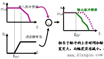 设输出波形也是梯形波,其幅度为 VOP ,脉宽为dO, 则截止频率以下部分(插入损耗为0)的频谱的幅度为: